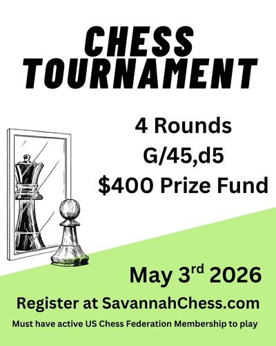 Savannah Chess will be holding a chess tournament at Morningstar Games on May 3rd 2026